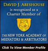 David Abeshouse retired from practicing commercial litigation law in 2010, in favor of practicing ADR law (representing parties in business arbitration & mediation) and serving as a neutral Arbitrator & Mediator in business cases.